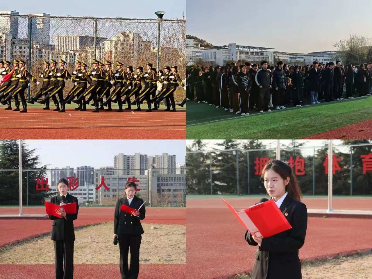 于崂山校区南苑操场联合举行“数理明志,艺燃芳华”国家安全教育日主题升旗仪式,青年学生代表肃立严谨、队列整齐,共同参与本次活动。