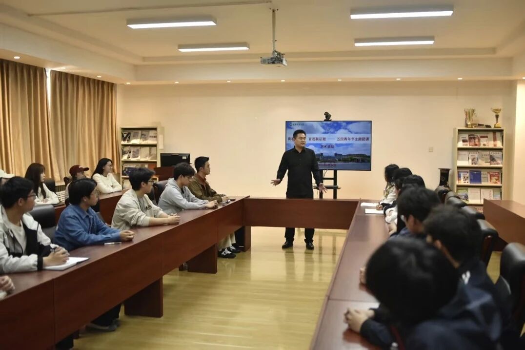 团委书记颜枫主讲,部分青年学生代表参与学习。